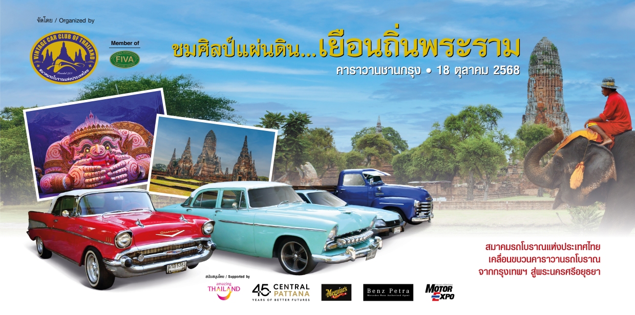 กลับมาอีกครั้งกับขบวนรถโบราณสุดตระการตา ใน “คาราวานชานกรุง 2025” โดยสมาคมรถโบราณแห่งประเทศ ร่วมกับเซนทรัลพัฒนา (CPN) และการท่องเที่ยวแห่งประเทศไทย ที่ปีนี้มาในคอนเซพท์ “ชมศิลป์แผ่นดิน...เยือนถิ่นพระราม” ในวันเสาร์ที่ 18 ตุลาคม 2568 เพื่อส่งเสริมการท่องเที่ยว และประชาสัมพันธ์พื้นที่ท่องเที่ยวในจังหวัดพระนครศรีอยุธยา ซึ่งจะมีขบวนรถโบราณ และรถคลาสสิค ที่หาชมยากเข้าร่วมกิจกรรมกว่า 30 คัน เส้นทางจากกรุงเทพฯ-พระนครศรีอยุธยา