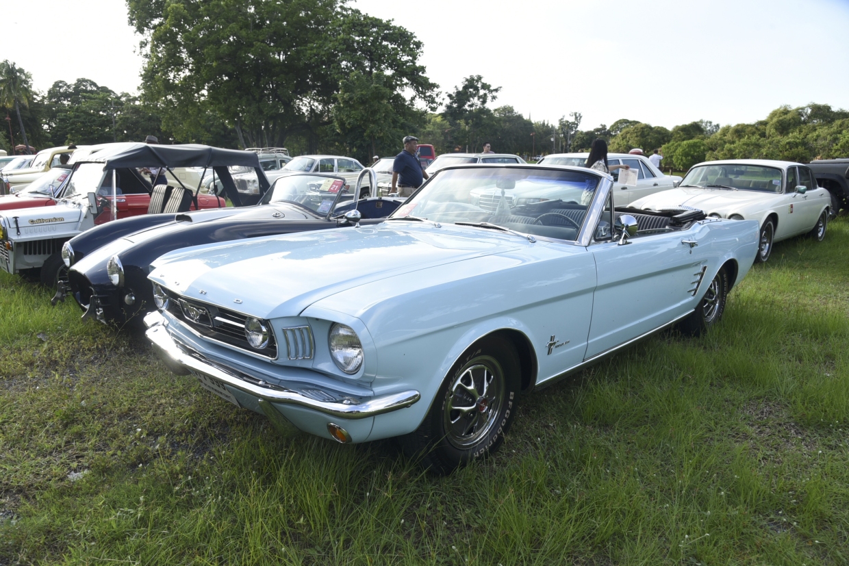 ดาวเด่นในคาราวาน Ford Mustang ปี 1966 เป็นรถสไตล์ 2 ประตูสปอร์ท สัญชาติอเมริกัน มีความพิเศษ คือ คันนี้เป็นรุ่นเปิดหลังคาแบบผ้าใบ Convertible มาพร้อมการตกแต่งแบบอเมริกันเรทโร ใครเห็นเป็นต้องเตะตา