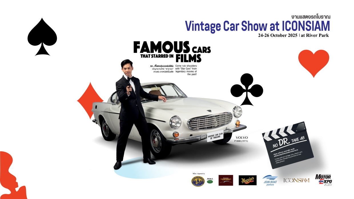 สมาคมรถโบราณแห่งประเทศไทย จับมือ ไอคอนสยาม จัดงาน “Vintage Car Show at ICONSIAM” รวมรถโบราณ รถคลาสสิค ดาวเด่นหาชมยาก จากภาพยนตร์ในอดีต กับบรรยากาศริมแม่น้ำเจ้าพระยา ภายใต้แนวคิด “รถ...ที่โลดแล่นบนแผ่นฟิล์ม-Famous Cars That Starred in flims”